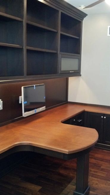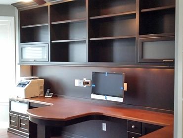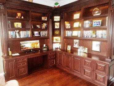 At Distinctive Wood Work, Inc., our South Jersey and Tri-State area custom home office woodworking and cabinets can make your office a unique place of beauty, style and functionality. We can build custom wood desks, bookshelves, credenzas, filing cabinets and more! Let Distinctive Wood Work turn your office into a stunning space where you'll be excited to work every day!